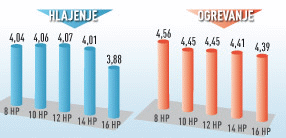 Standardni način ponuja najvišjo zmogljivost ob ohranjanju izvrstne učinkovitosti, medtem ko visokoučinkoviti način (HI COP) omogoča izredno učinkovitost in nizke stroške delovanja, pri čemer se zmogljivost le rahlo zniža. |