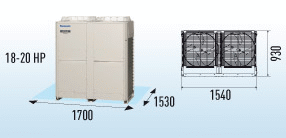 Pet vrst enosmernih inverterjev zmogljivosti od 8 do 16 HP ima poenotene zunanje mere ohišja z z dvokomorno zasnovo. V spodnjem prostoru zunanje enote so nameščeni kompresor in drugi deli, v zgornjem pa toplotni izmenjevalnik. Takšna zasnova je omogočila najmanjši namestitveni prostor v panogi in tiho delovanje. Zagotovljena je funkcija zasilnega delovanja.
