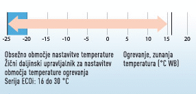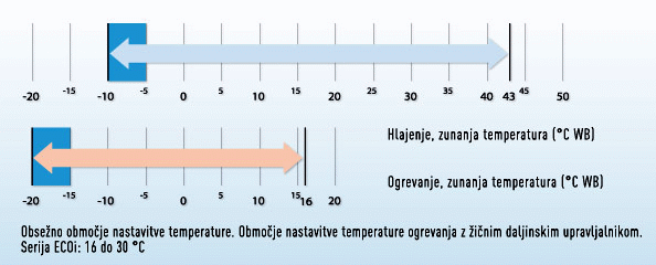 Območje delovanja pri ogrevanju: s pomočjo kompresorja z visokotlačno posodo je območje delovanja pri ogrevanju razširjeno do –25 °C. Območje delovanja pri hlajenju: –10 °C DB do +43 °C DB.