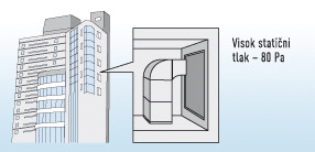 S pomočjo nove zasnove ventilatorja, motorja ventilatorja in ohišja omogoča posebna postavitev na mestu vgradnje tlak do 80 Pa pri vseh modelih. Za prilagodljivo namestitev je potrebna vgradnja izpustnega kanala, s katerim se prepreči padec učinkovitosti zaradi skrajšane poti kroženja zraka. Nova funkcija omogoča namestitev notranjih enot v tovarniških prostorih v poljubnem nadstropju stavbe.