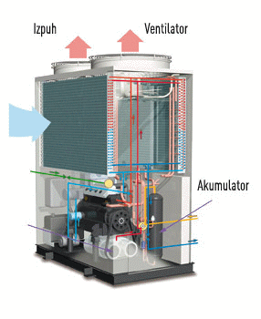 Sistem z rekuperacijo toplote, s sočasnim ogrevanjem in hlajenjem.