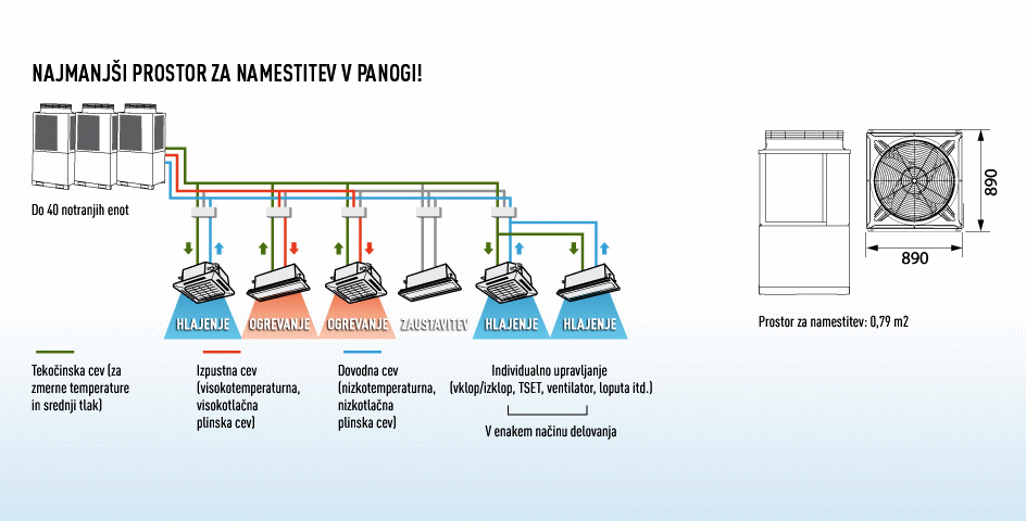 Popolnoma samodejno sočasno delovanje ogrevanja in hlajenja ter povratno zbiranje toplote