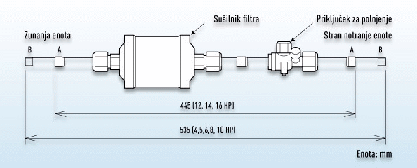 • Sušilni filter morate namestiti na tekočinsko cev vsake zunanje enote.