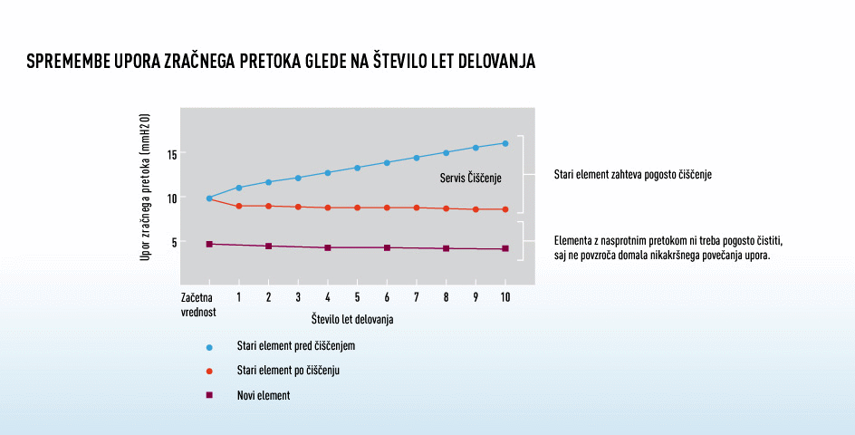 • Element z nasprotnim pretokom se uporablja za znižanje ravni hrupa in tanjše, manjše ohišje.